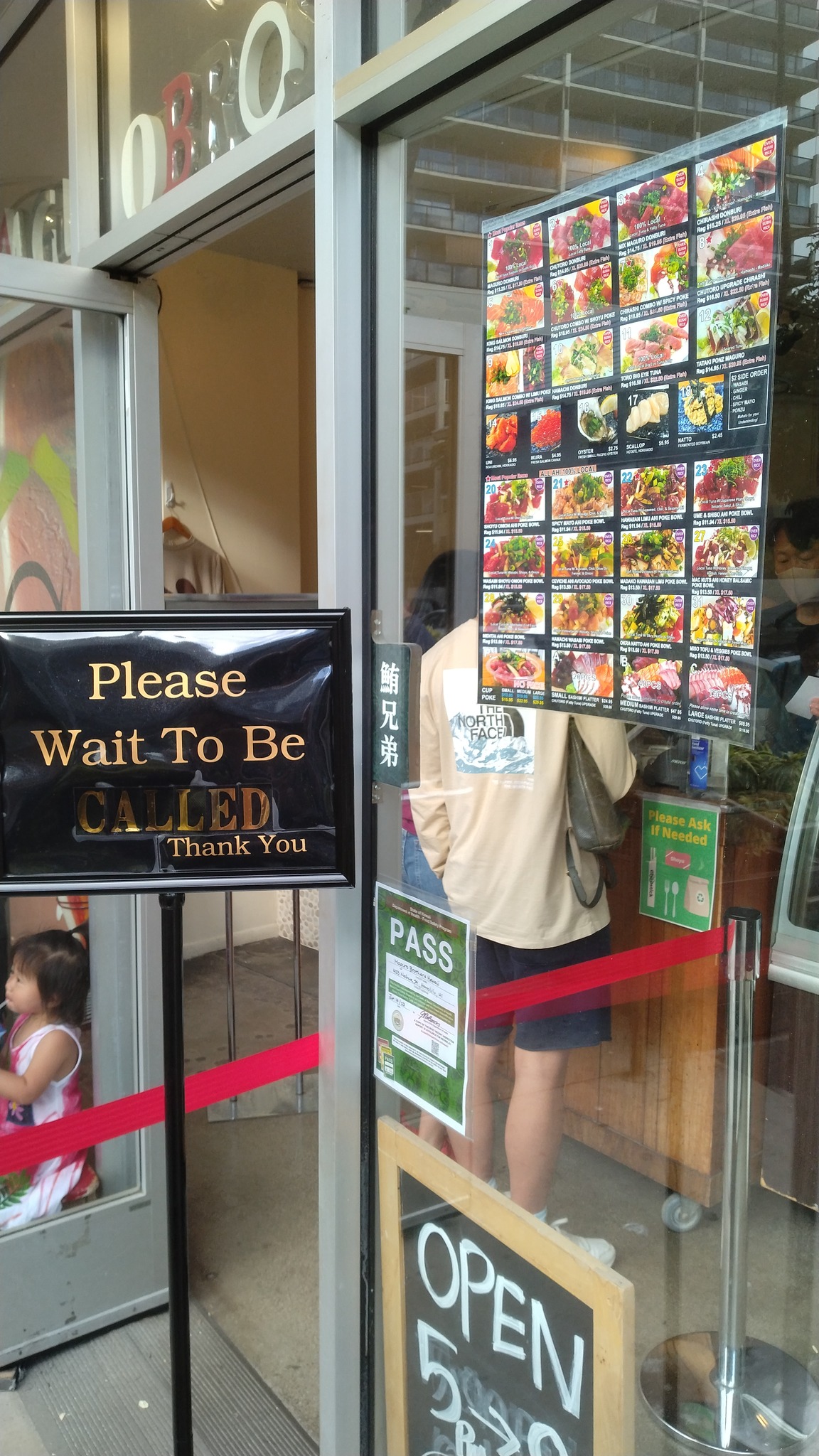 夕飯には、これもまた気になっていた「マグロブラザーズ」のポケ丼を買いにいきました。アメリカ人がたくさん並んでいました。