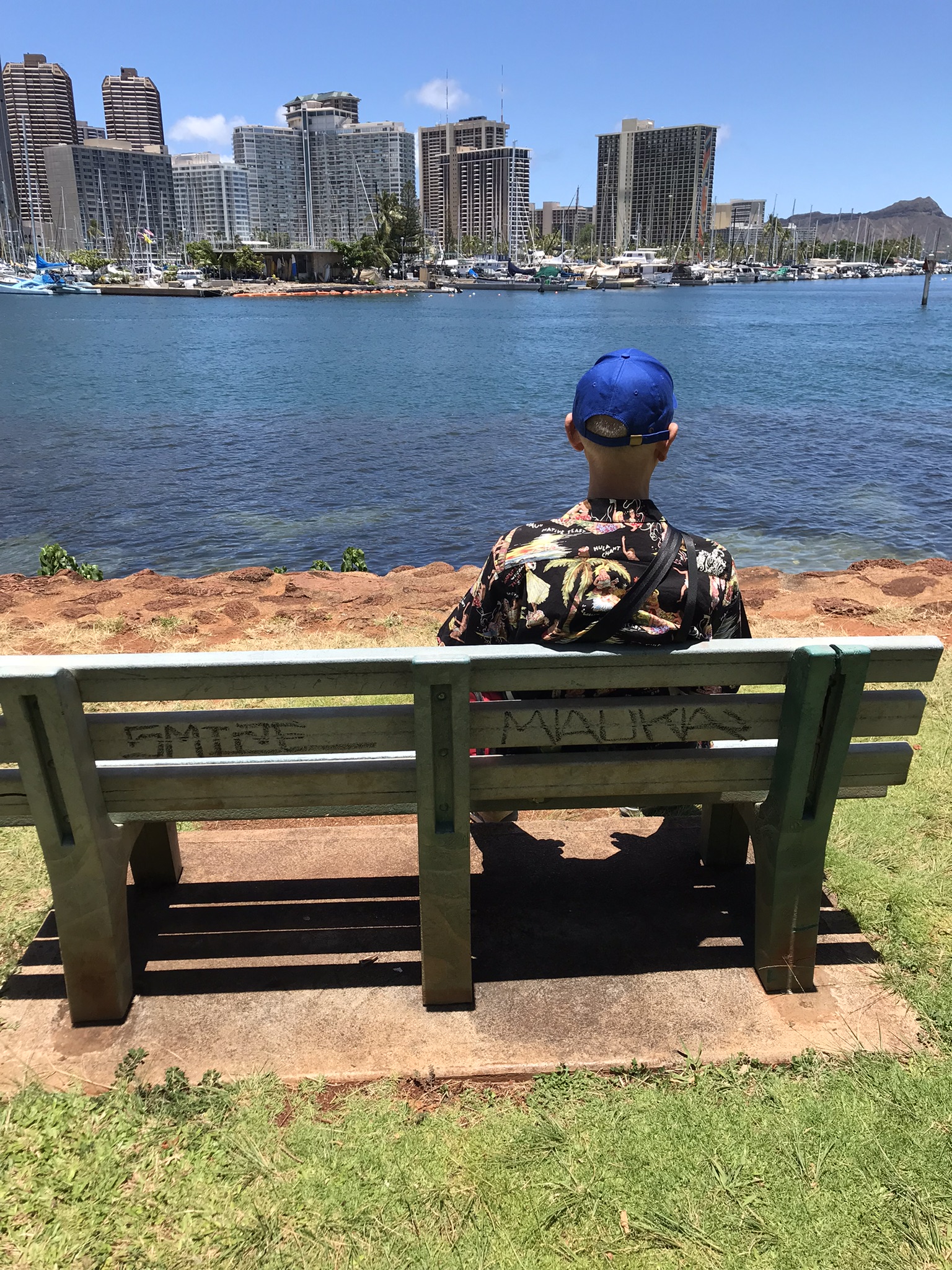 去年亡くなられたクロさんを偲び、クロさんがお好きだった景色を見にアラモアナビーチパークへ。