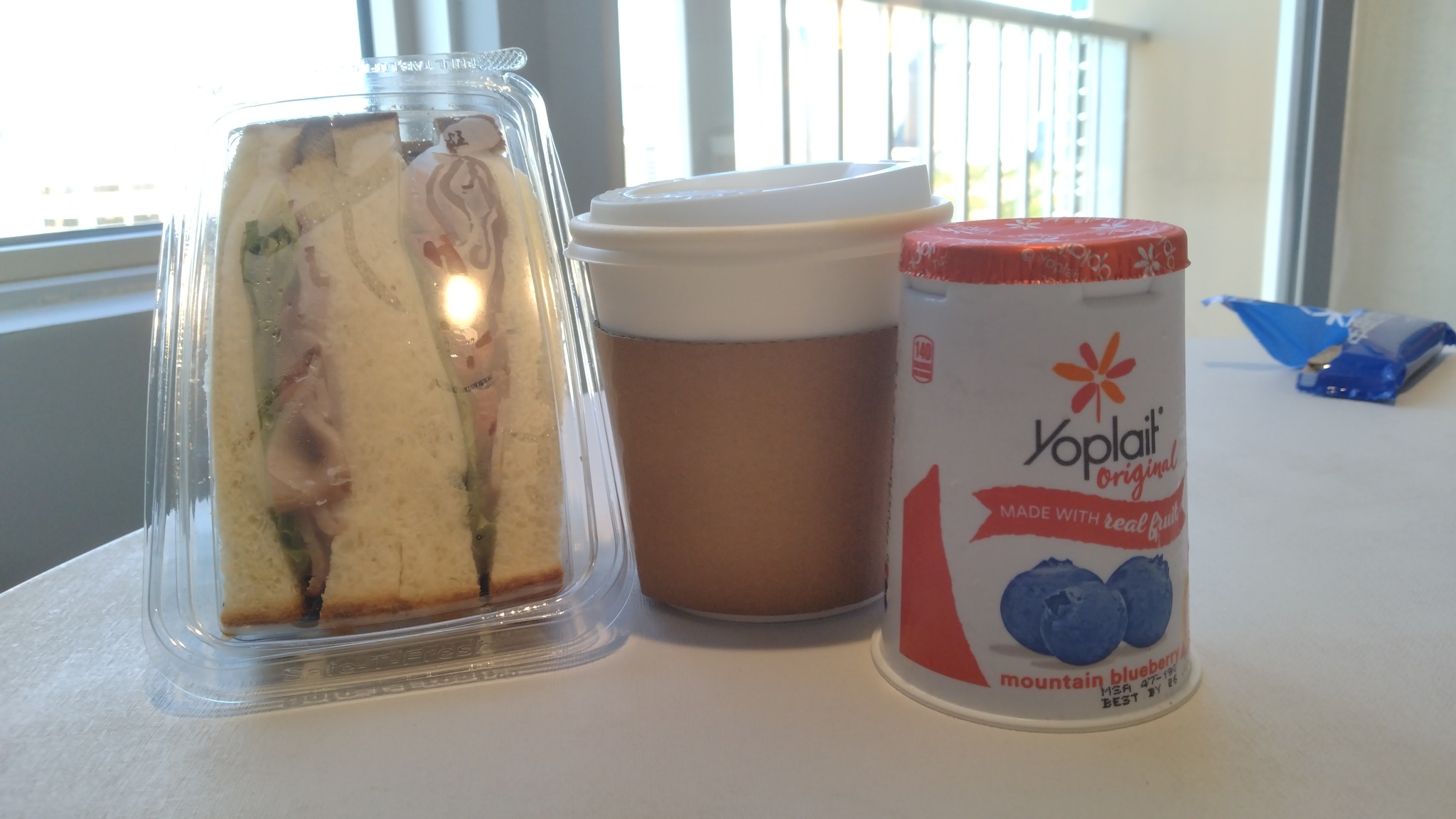 ABCのサンドイッチとヨーグルトで朝ごはん。ちなみに、このサンドイッチは$7.69。日本円で千円超え!円安おそるべし。