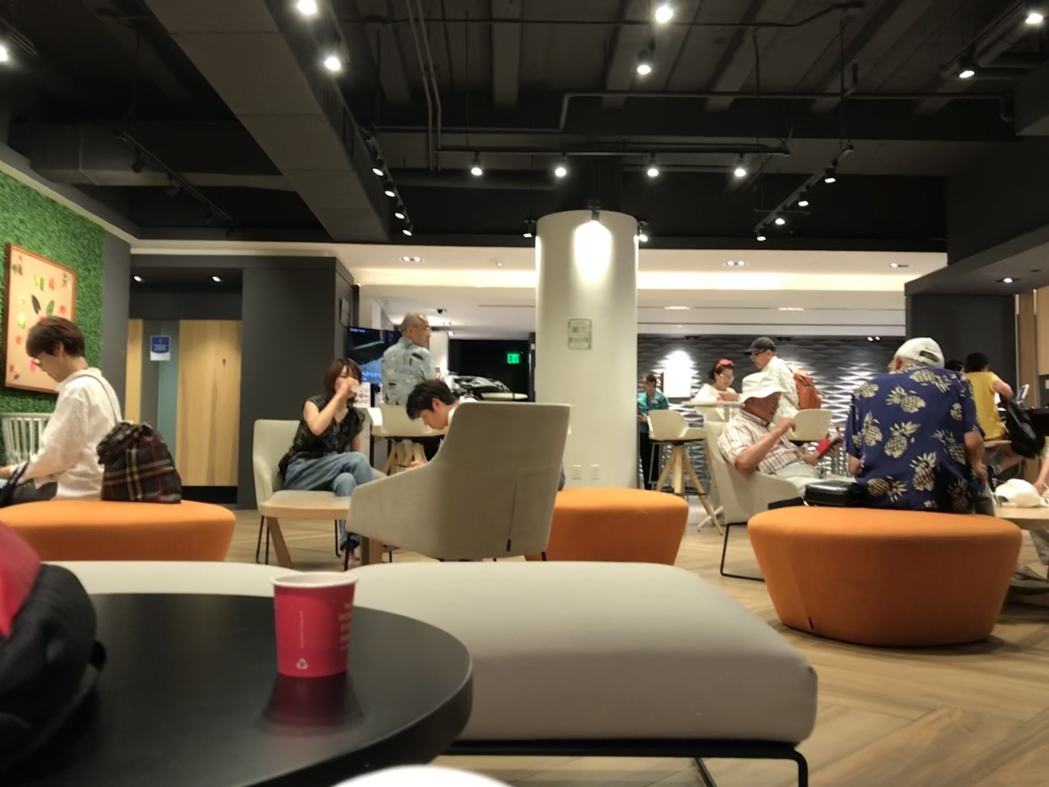 夫が無料のマッサージ機を使っている間、私はWiFiの充電をしながら無料ドリンクで一息。無料で使える楽天ラウンジは、今回のハワイで初めて使いましたが、円安の強い味方です。