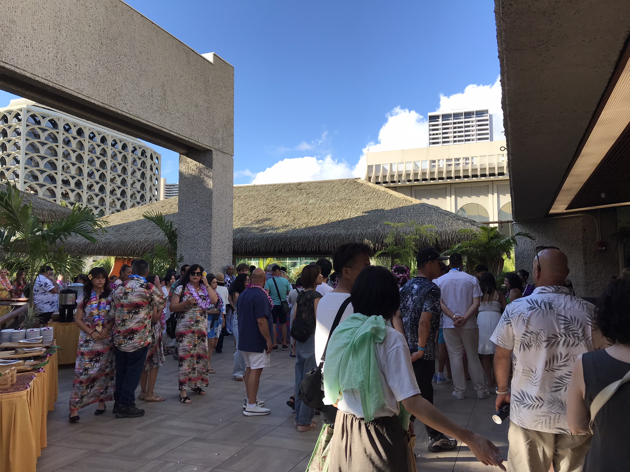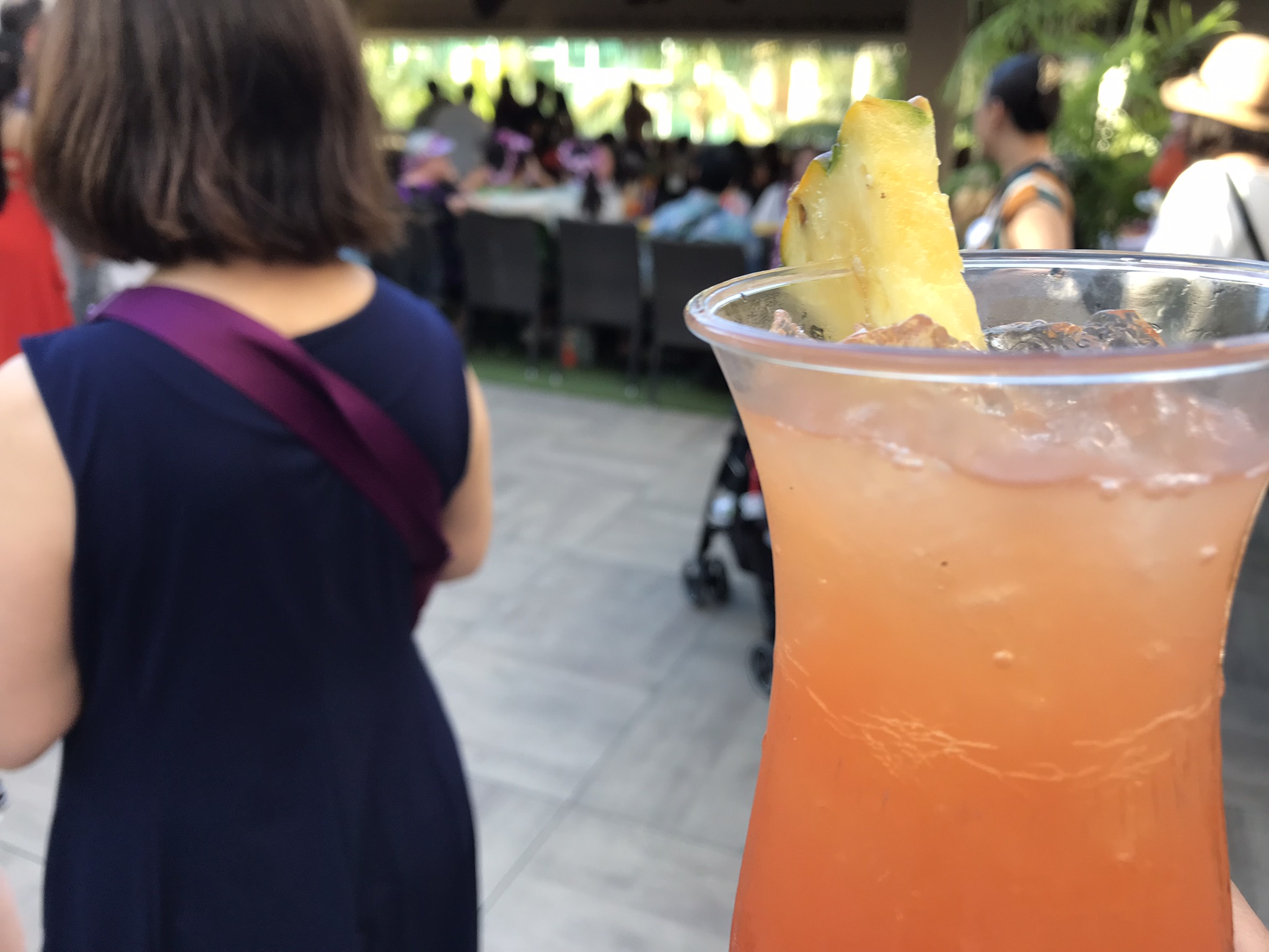 ルアウはハワイ語で「宴」を意味する言葉です。ウェルカムドリンクのマイタイをもらって席へ。
