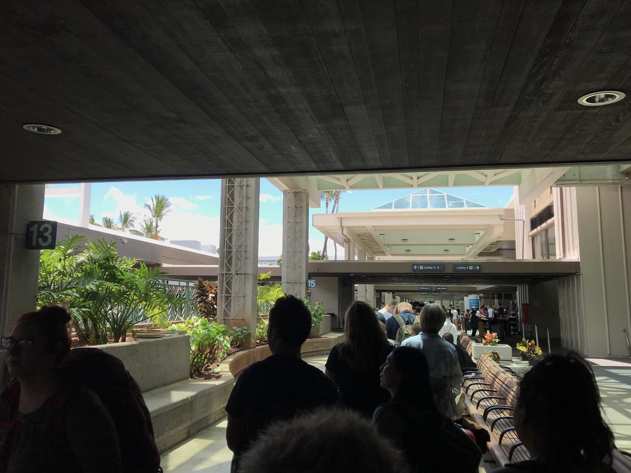 HISの迎えの車が11時に来て、ダニエル・K・イノウエ国際空港に着くと、チェックインカウンターに並ぶ長い長い長い人の列。
